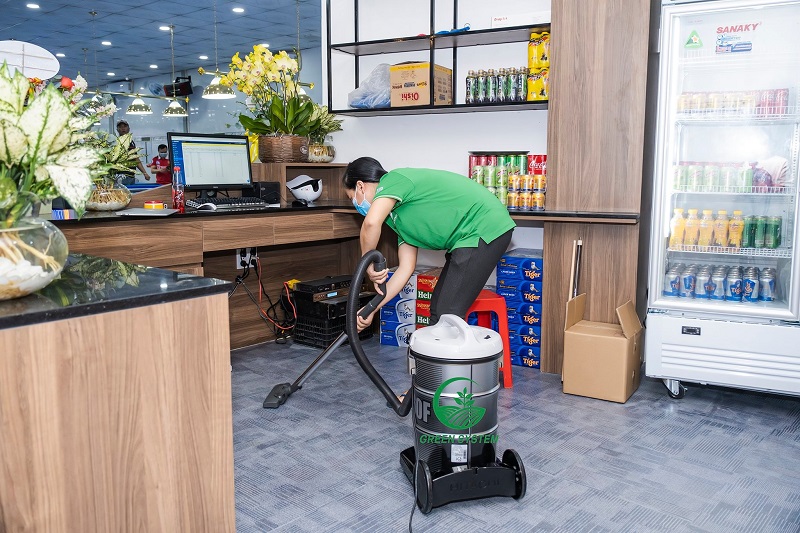 Mô tả: Sử dụng máy hút bụi chuyên nghiệp để hút bụi và rác trên sàn nhà, thảm, sofa, ghế, và các bề mặt khác. Ngoài ra, làm sạch các bề mặt bằng khăn ẩm và chất tẩy rửa phù hợp để loại bỏ vết bẩn và bụi bẩn.