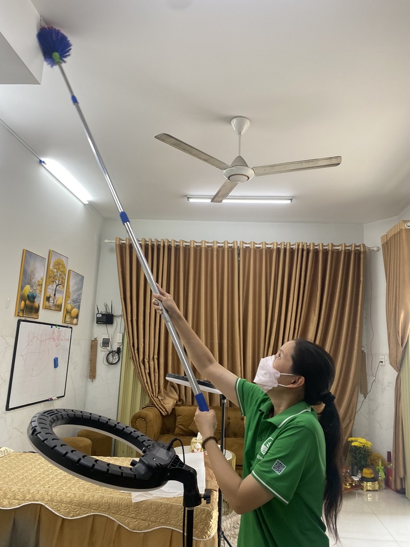 Mô tả: Kiểm tra và quét sạch các màng nhện và bụi bẩn trên tường, trần, góc tường và các bề mặt khác trong nhà. Đảm bảo các không gian nhà luôn sạch sẽ và thoáng mát.
